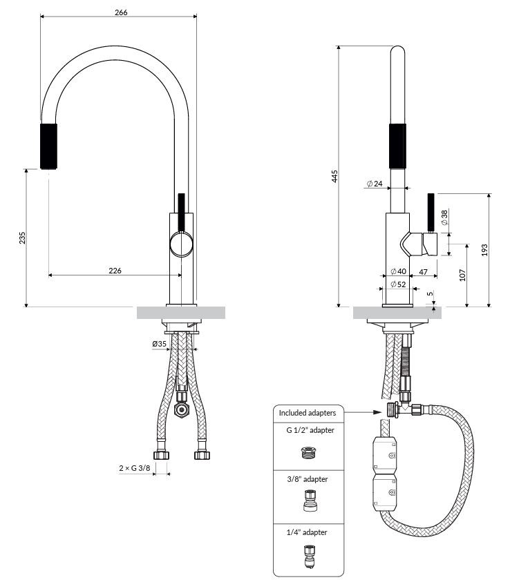 - súčasťou balenia: pripojenie pre sadu filtrov s rozmermi G 1/2", 3/8", 1/4"