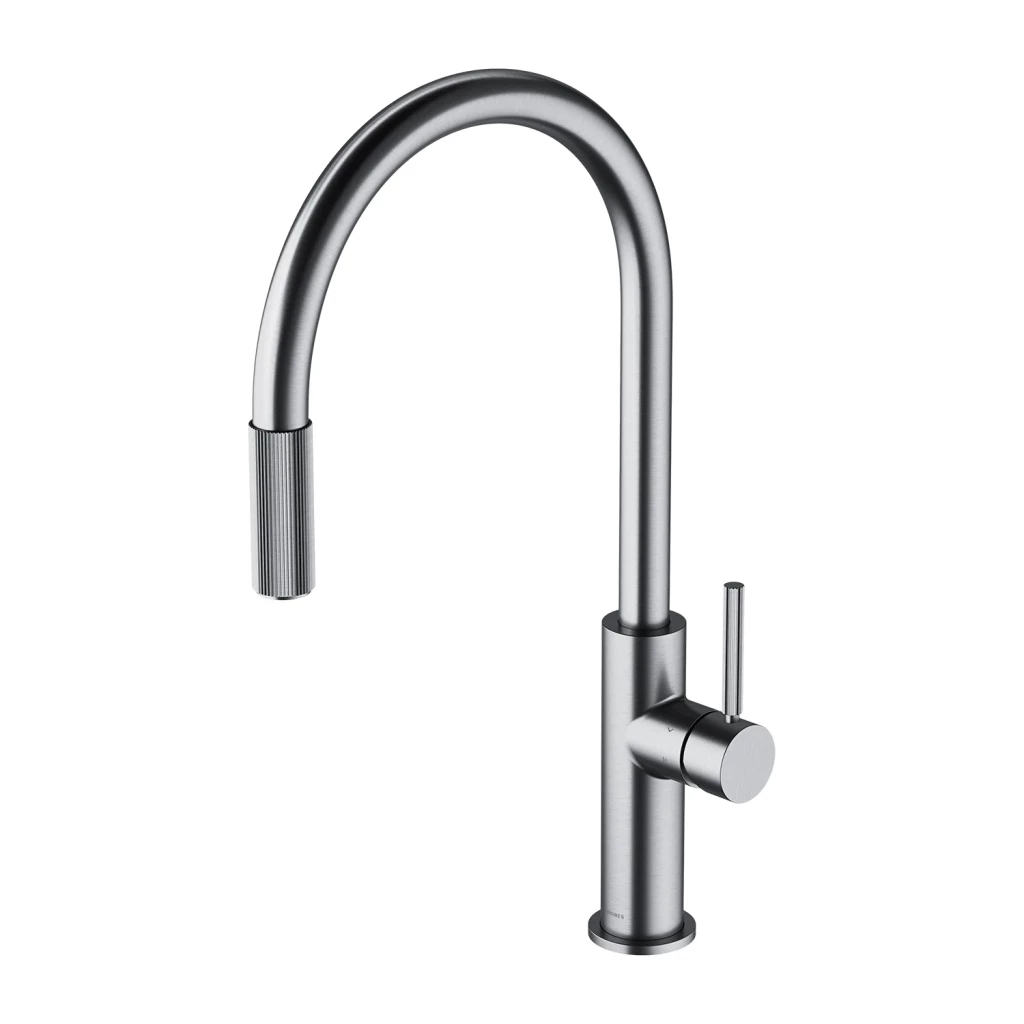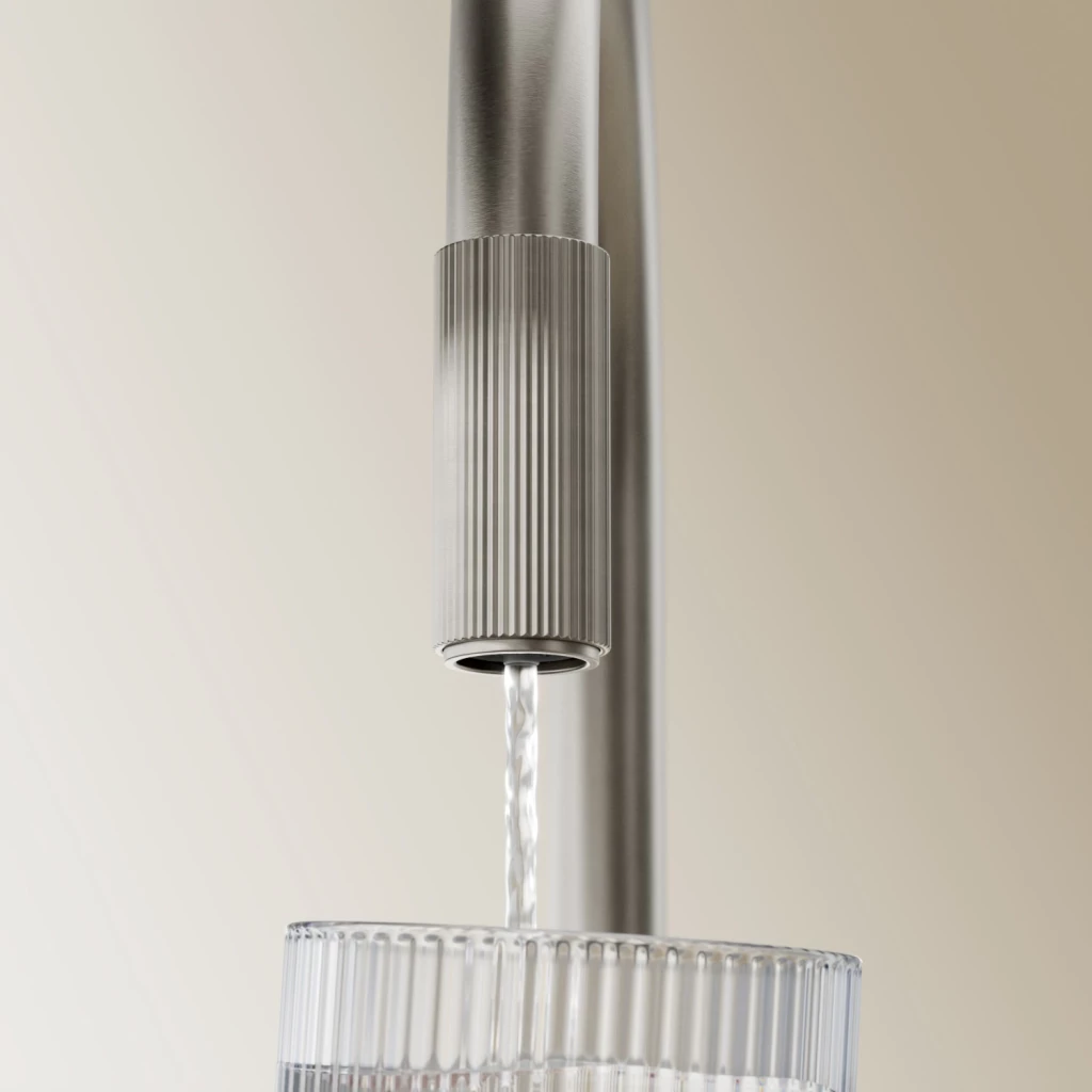 Kuchynská batéria OMNIRES SWITCH kombinuje minimalistický dizajn s vyváženými proporciami a praktickou funkčnosťou a dodáva ako bežnú, tak filtrovanú vodu. Výrazné, presne drážkované detaily umožňujú intuitívne použitie a označujú dva nezávislé body otvorenia vody: bežnú pri batérii a filtrovanú na konci výtoku. Jednoducho otočte krúžok a naplňte pohár rýchlym prúdom pitnej vody. Otočný, vyťahovací výtok ďalej vylepšuje funkčnosť batérie a poskytuje väčšiu voľnosť pri dreze. Uľahčuje oplachovanie, umývanie a plnenie riadu a tiež dôkladné čistenie celého povrchu.