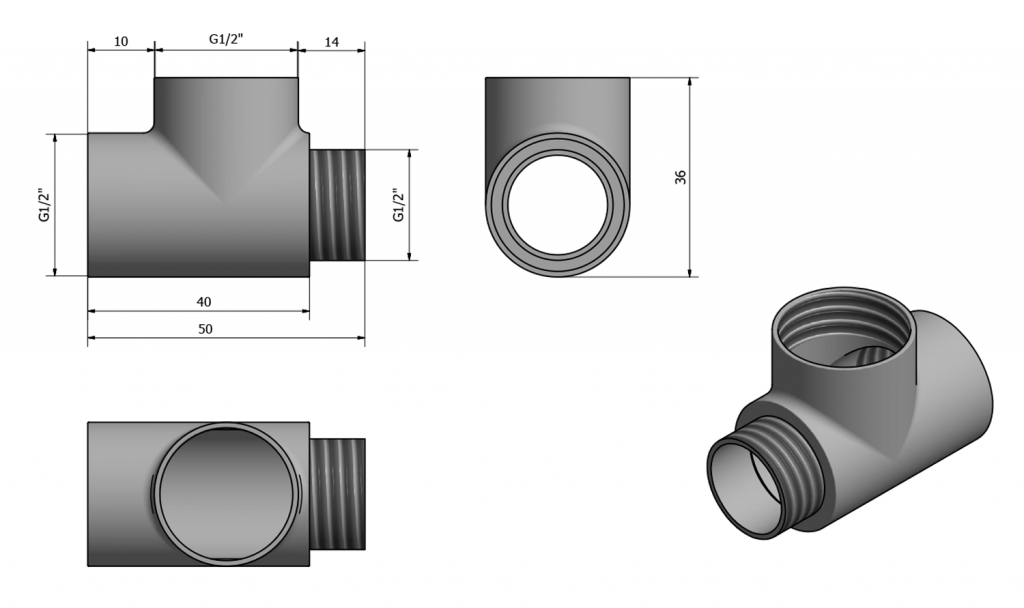 T-kus je určen pro připojení topné tyče do otopného tělesa v kombinaci se systémem ústředního vytápění.