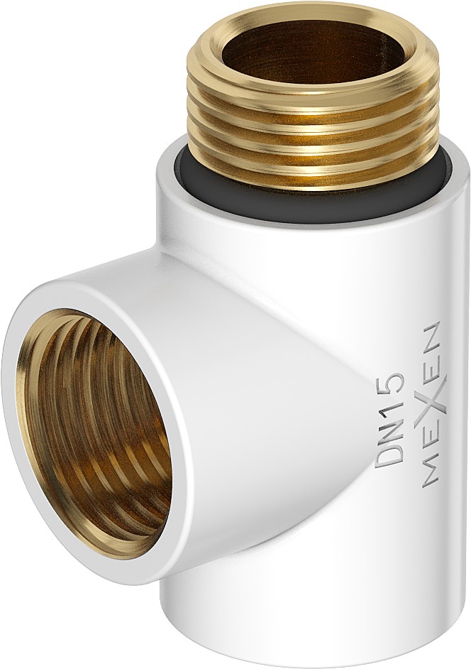 Mosadzný adaptér v tvare trojuholníka , je bežne používaný pre elektrické ohrievače vody. Má dva vnútorné závity a jeden závit vonkajší. Označenie na šróbenie udáva veľkosť DN15, čo sa vzťahuje na priemer 15 mm pre vnútorný závit. Materiál kombinuje mosadz s farebným povlakom, čo naznačuje, že je navrhnutý pre odolnosť a kompatibilitu s vykurovacími systémami. T-kus je dostupný vo farebných variantoch: chróm, biela, zlato, antracit a čierna.