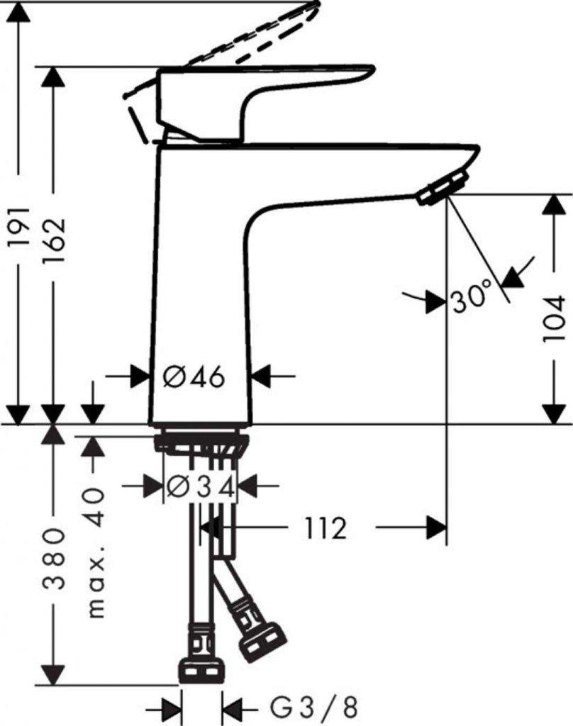 Páková umývadlová batéria bez odtokovej súpravy