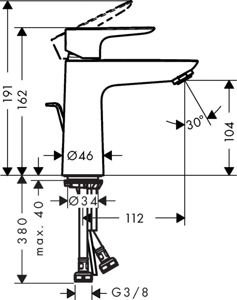 Páková umývadlová batéria s odtokovou súpravou s tiahlom