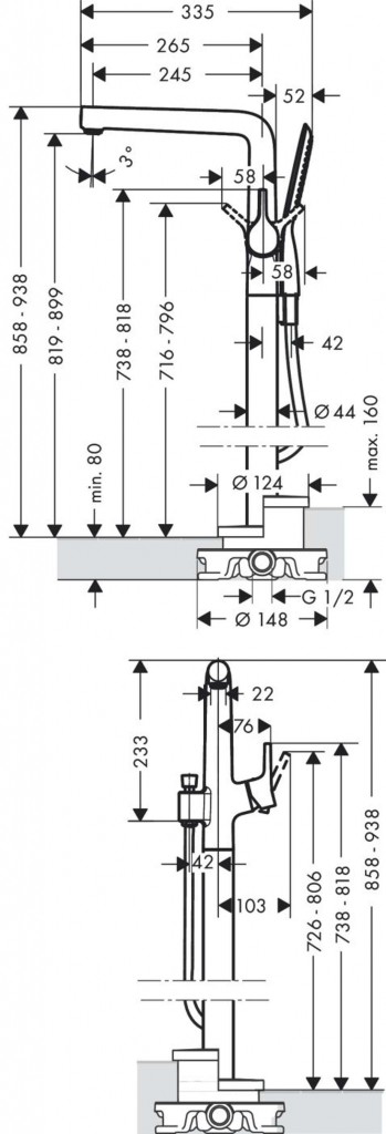 - tyčová ručná sprcha, sprchová hadica a držiak sprchy sú súčasťou dodávky