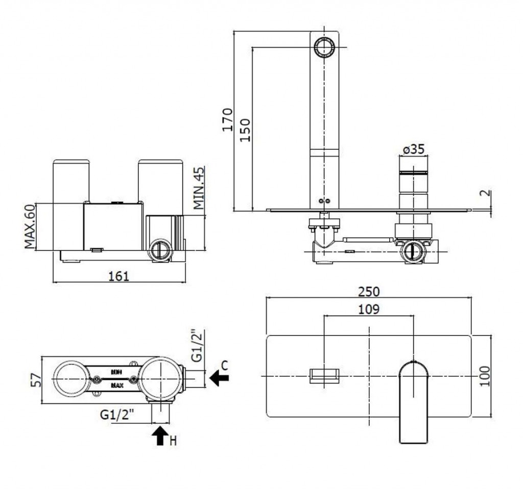 - dĺžka výtoku 150 mm