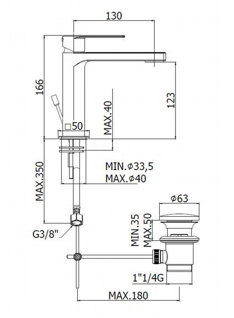 - dĺžka výtoku 130 mm, komfortná zóna 123 mm