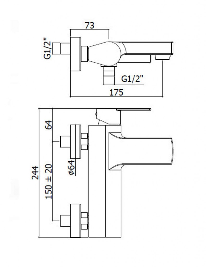 Vaňová nástenná páková batéria bez sprchového príslušenstva