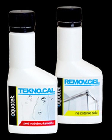 Pozor: Pri použití prípravku proti vodnému kameňu Tekno.Cal na sklá, na ktorých sú ešte stopy od vodného kameňa, je účinok tejto úpravy neúčinný. Výrobky na odstránenie vodného kameňa a na udržiavanie rýchlejšieho stekanie kvapiek po skle, sú určené len pre skla, v žiadnom prípade nie pre profily, pánty a kľučky.