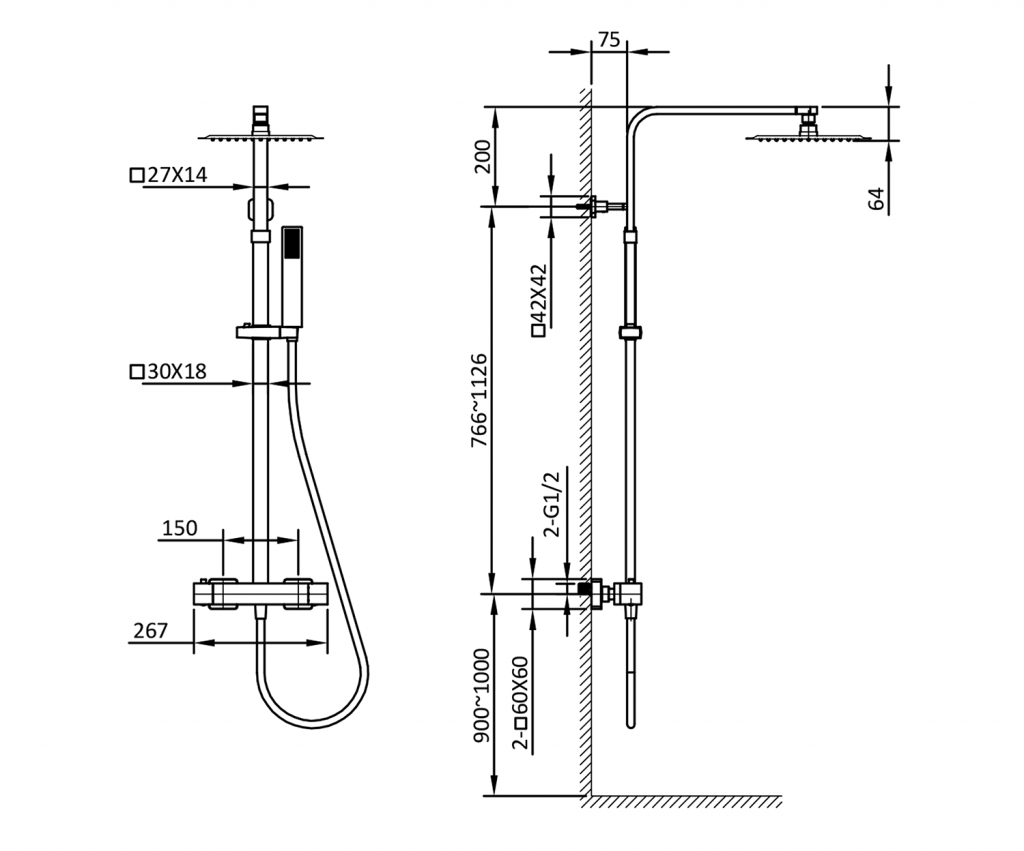 SAPHO - VIOLANTE sprchový stĺp s termostatickou batériou, chróm (SJ139)