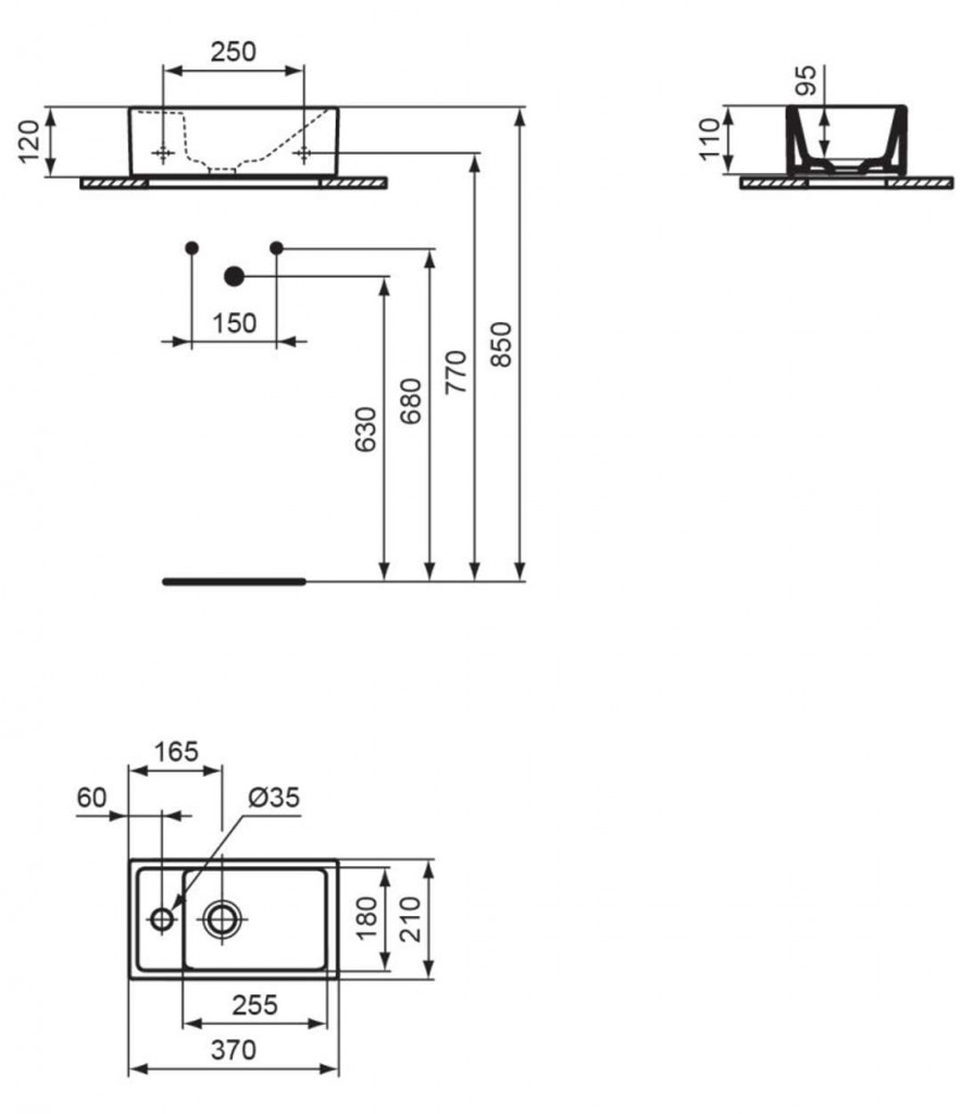 Umývadlo s otvorom pre batériu vľavo