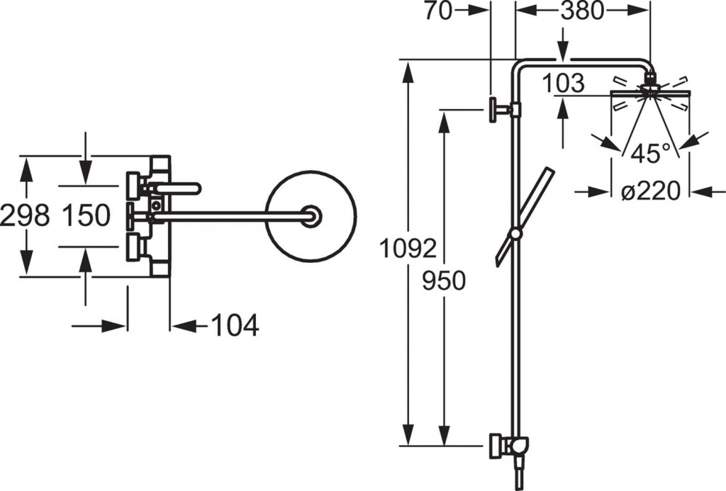 s priamo pripojeným sprchovým systémom