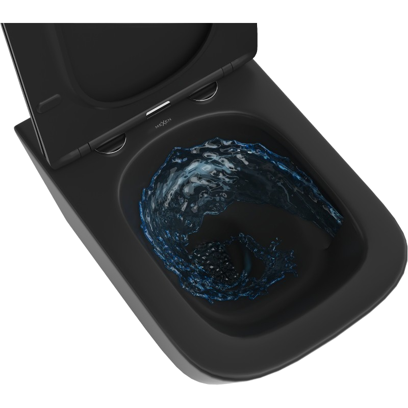 Závesná WC misa Mexen Teo v čiernej matnej farbe je moderným a štýlovým riešením pre súčasné kúpeľne. Vďaka svojmu geometrickému, obdĺžnikovému tvaru pôsobí veľmi elegantne a výrazne, čím sa stáva dominantným prvkom interiéru. Misa je vybavená technológiou Rimless – bez oplachového kruhu, ktorá zaisťuje vyššiu hygienu a jednoduchšiu údržbu, pretože sa v okrajoch neusadzujú nečistoty ani baktérie.