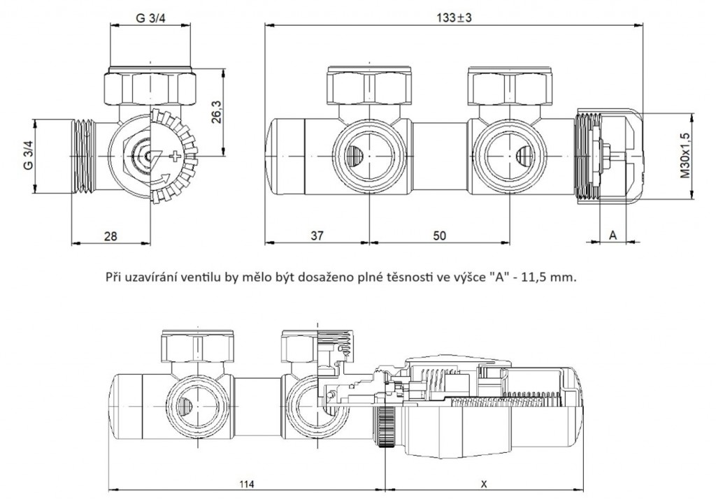 Ventil je určený na pripojenie radiátorov na rozvody TÚV s vývodom zo steny. Nie je možné kombinovať s elektrickou vykurovacou tyčou.