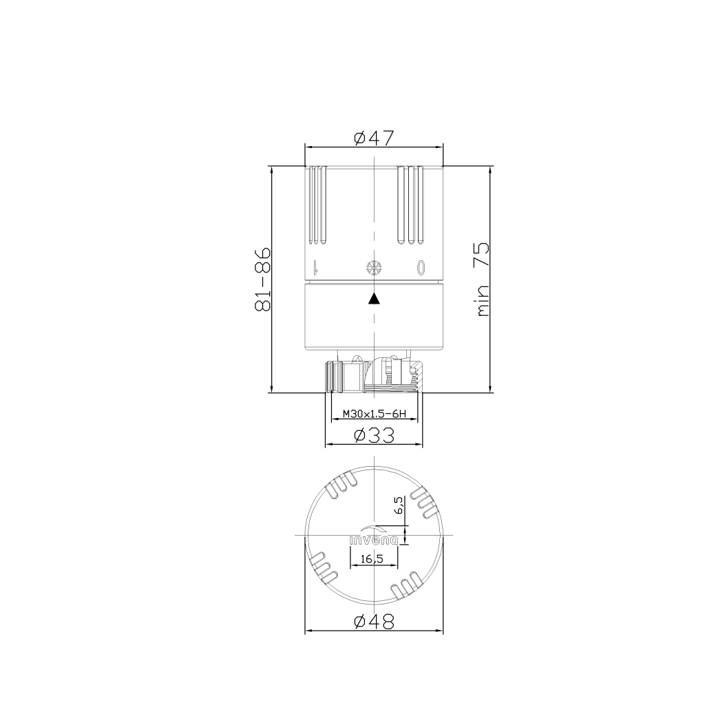 Kvapalná termostatická hlavica na reguláciu izbovej teploty, určená pre termostatické vložky a ventily M30×1,5 s uzatváracím rozmerom 11,5 mm.