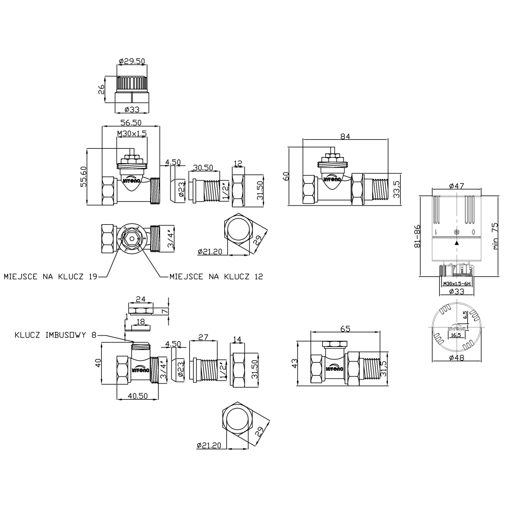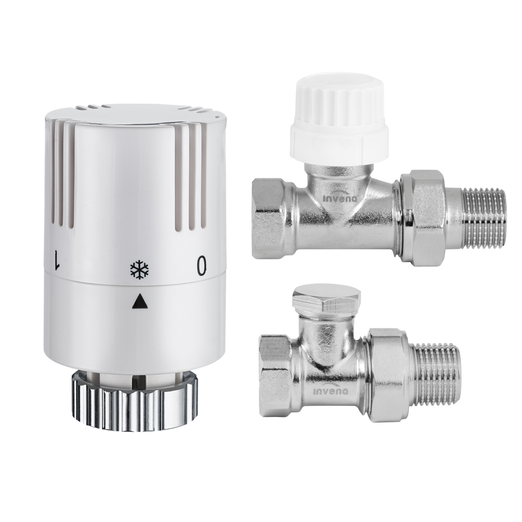 na pripojenie radiátorov v systéme ústredného vykurovania z oceľových rúrok. Ventily z poniklovanej mosadze, skrutkové spoje opatrené O-krúžkom, ventily kompatibilné s ostatnými hlavicami z ponuky INVENA