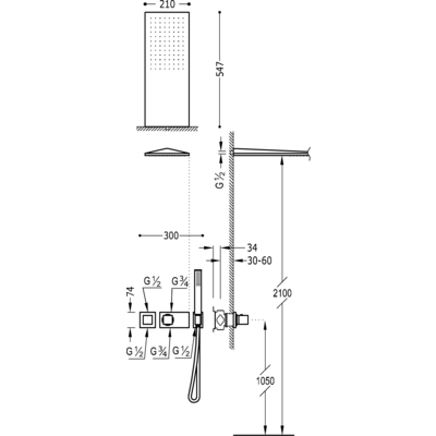 - Nástenné sprchové kropítko z nerezovej ocele 210x550 mm