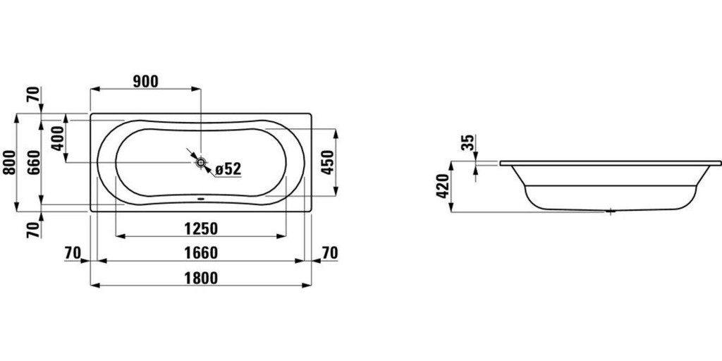 Zápustná oválna vaňa Tálium s protihlukovými podložkami