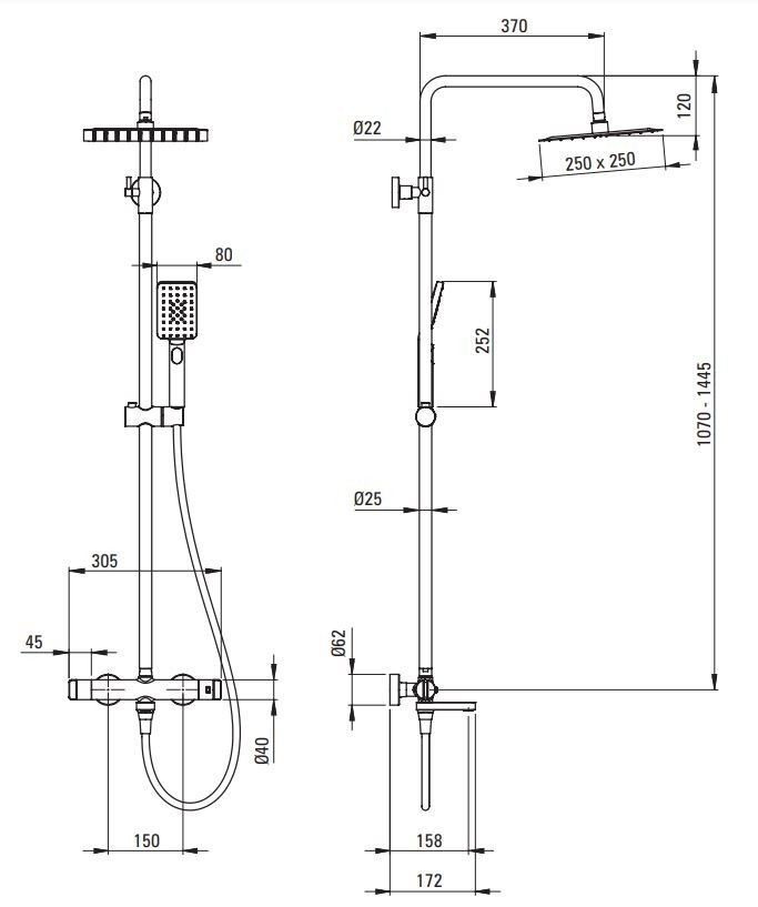 - možnosť nastavenia sprchovej tyče od 1070 - 1445 mm
