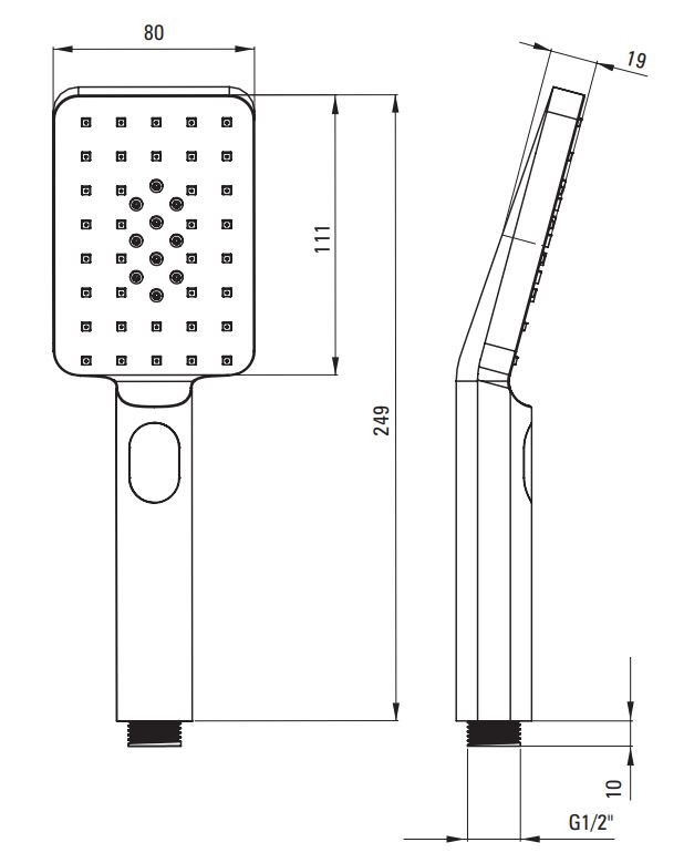 - oceľové hlavové sprchy 250 x250 mm , jednou funkciou, kĺbové dopojenie, Anti-calc pre ľahké odstránenie vodného kameňa