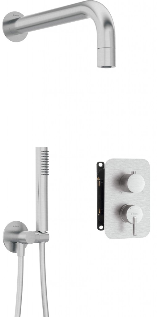 Sprchový set pod omietku má všetky potrebné prvky na vybavenie sprchy. Vysoká kvalita použitých materiálov mnohokrát testovaných v laboratórnych podmienkach zaisťuje bezporuchovú prevádzku. Moderný dizajn a estetické prevedenie upúta pozornosť a vstavaná montáž opticky zväčšuje priestor. Tradičné riešenie umožňuje získať priestor napríklad pre prídavnú policu na kozmetiku alebo vešiak. Vďaka tomu môžete ľahšie a rýchlejšie upratať celú miestnosť. Sada má zmiešavací BOX, kde si môžete sami nastaviť teplotu pretekajúcej vody podľa svojich potrieb. Súprava má hornú sprchovú hlavicu so širokou kužeľovou sprchovou tryskou.
