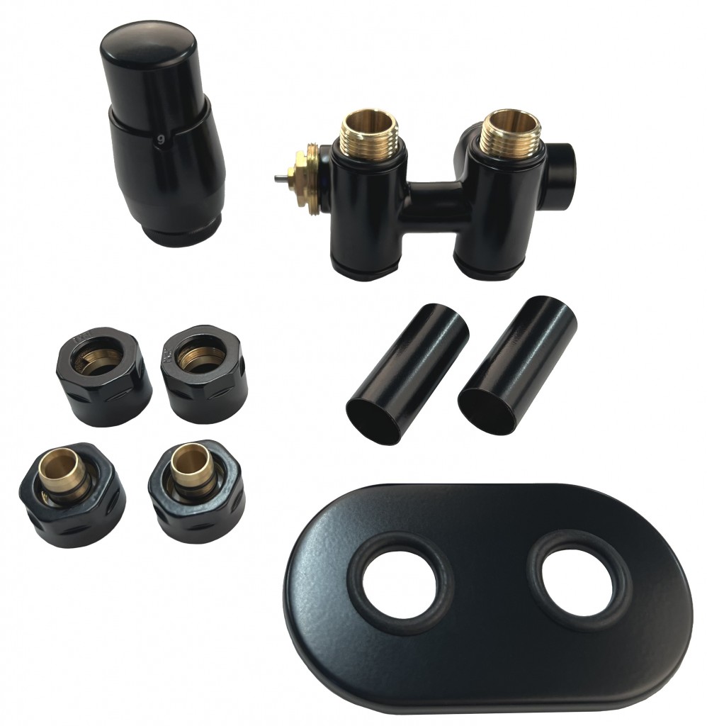 THERMCOMBISET je určený predovšetkým pre asymetrické radiátory (Edinburg, Darvel, Namelles, Popstar) pre teplovodnú aj kombinovanú prevádzku ( možnosť vloženia elektrickej vykurovacej tyče ). Pre teplovodnú prevádzku je set kompletný a nič iné neobjednávate. Pre kombinovanú prevádzku musíte ešte objednať tyč v odporúčanom výkone, ktorú je možné prestrčiť cez ventil vľavo alebo vpravo. Garnitúra, termostatická hlavica aj kompletné príslušenstvo je k dispozícii v 17-tich rôznych farbách vždy s veľmi kvalitnou povrchovou úpravou. Ventily dodávame vrátane zverného šróbenia na Cu aj na PEX-AL-PEX.