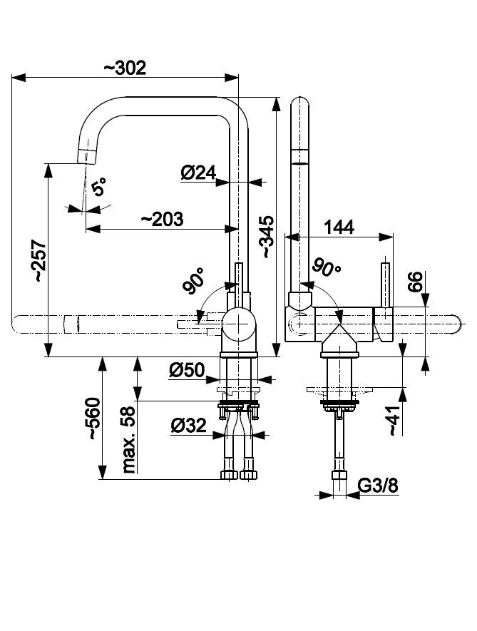 Drezovú batériu Theta umiestnite podľa ľubovôle na drez alebo pracovnú dosku. Batéria je vyrobená z mosadze a opatrená keramickou kartušou Ø35, ktorú len tak neopotrebujete. Výhodou je otočný sklopný výtok, ktorý v praxi určite oceníte. Batéria je vysokja 34,5 cm a pri sklopení 6,6 cm.