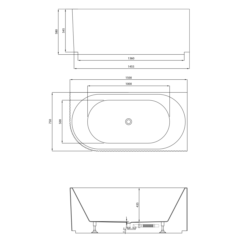 AQUALINE - TIBERA STRIP R rohová stojaca vaňa, 150x75cm, biela (E1037G)
