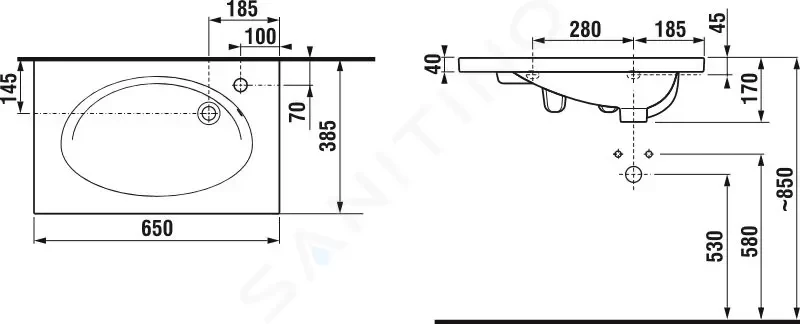 Umývadlo nábytkové 65 cm s otvorom pre batériu vpravo