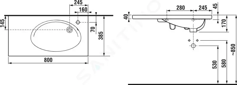 Umývadlo nábytkové 80 cm s otvorom pre batériu vpravo