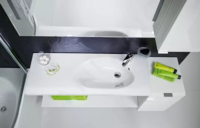 Dizajnové umývadlo Tigo 80 cm s otvorom na batériu vždy vpravo ponúka dostatok odkladacích plôch.