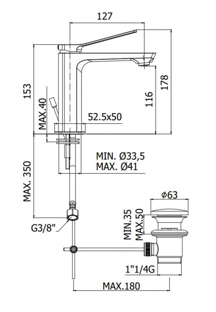 Stojanková umývadlová batéria, s odtokovou súpravou