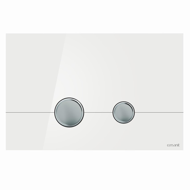 Obdĺžniková mechanická doska je vyrobená z bieleho skla s mierne vypuklými tlačidlami s chrómovým lesklým povrchom. Tlačidlo stery je prispôsobený pre mechanické splachovanie pomocou dvojdielneho systému, ktorý šetrí vodu. Tlačidlo sa hodí pre skryté rámy AQUA 0/2/4, SYSTEM 0/2, HI-TEC a LINK. Pracuje s FRESH SYSTEM, čo je ideálne riešenie v spojení s technológiou bez okrajov CleanOn.
