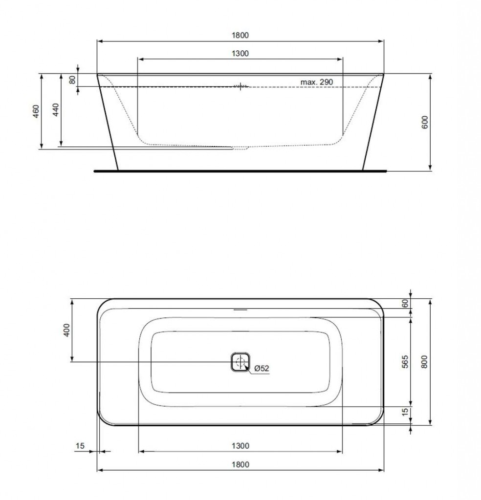 - odtok uprostred, priemer 52 mm, farebné prevedenie chróm