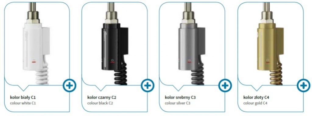 Farebné prevedenie vykurovacej tyče: biele / čierne / strieborné / zlaté Dĺžka a výkon tyče: