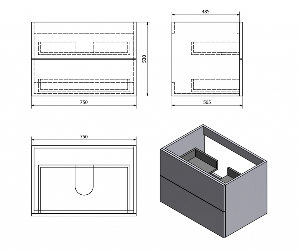 Nábytok je vybavený pojazdy zásuviek s pomalým dojazdom a systémom automatického dovretí zásuviek. Už žiadne hlučné zatváranie.