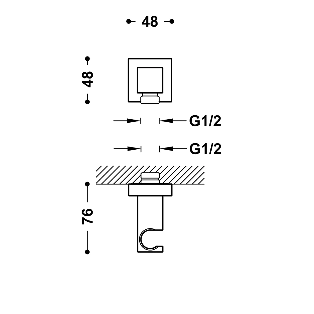 Tres držiak sprchy čierna mat s prípojom vody, hranatý, hranatá ružica, TRES 00618201NM