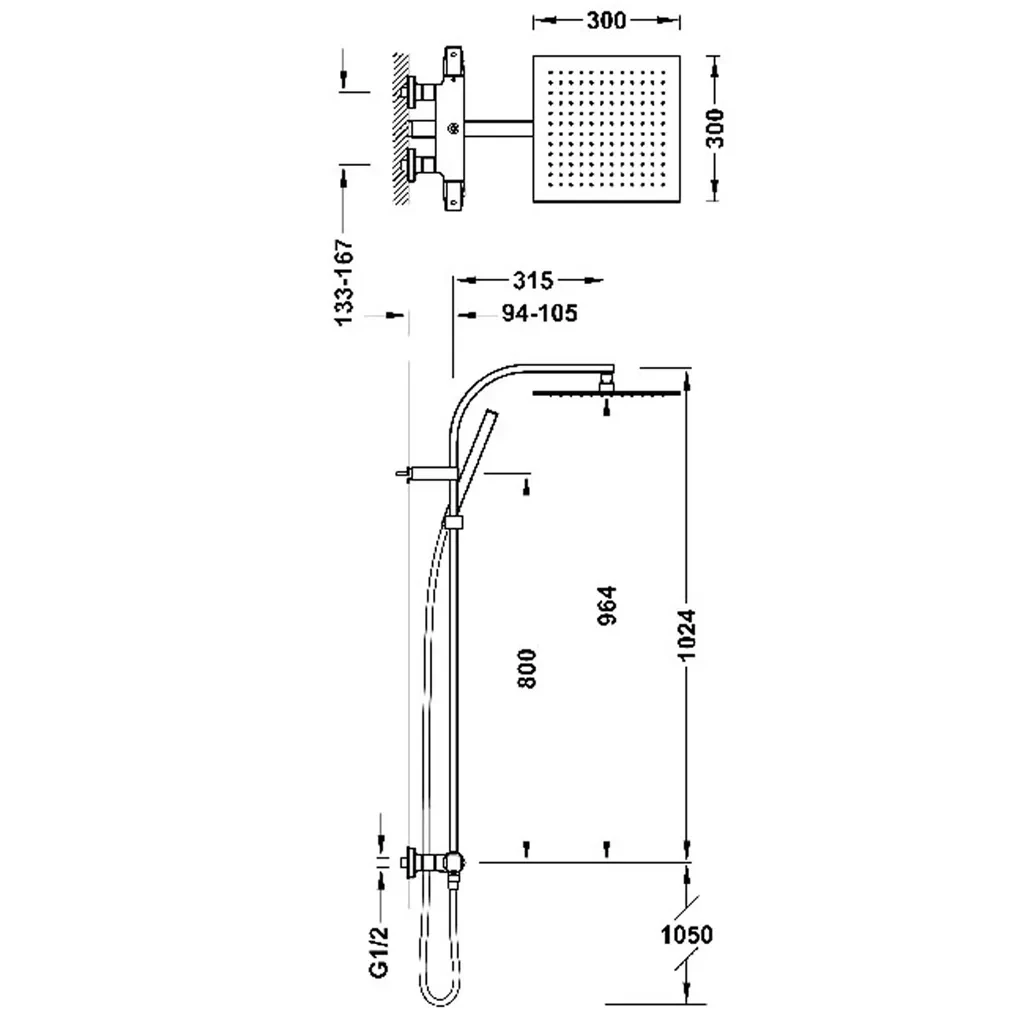 Sprchový set s hlavovou a ručnou sprchou, prepínač integrovaný v ovládaní batérie