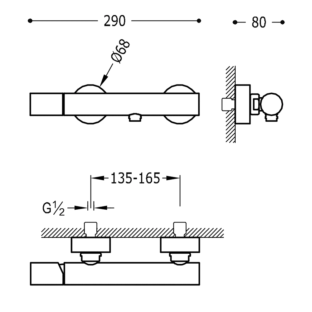 Sprchová nástenná batéria s držiakom sprchy, ručnou sprchou z mosadze a hadicou