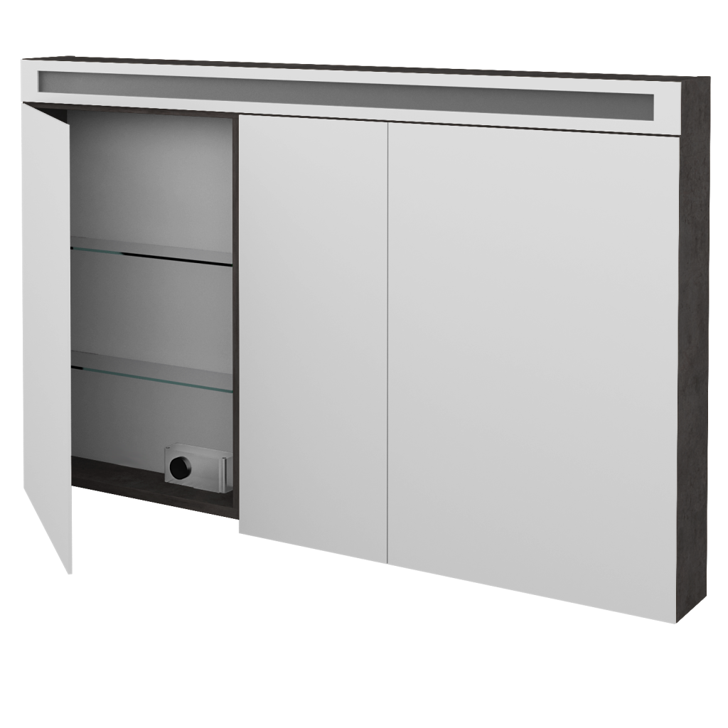 Dreja - Trojdverová zrkadlová skrinka AIR GA3OE 130 - D16 Tmavý betón (239985)