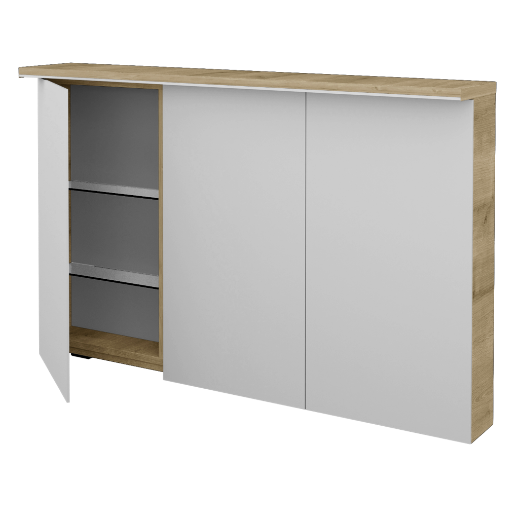 - 3D - otvárateľná predná časť skrinky je tvorená tromi obojstrannými zrkadlami.