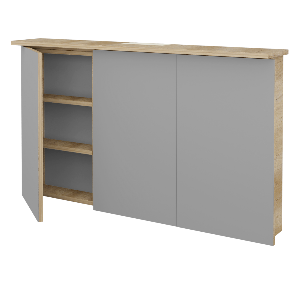 Parametre galérkyGalérka SANI GA3O 120 je konštruovaná v trojdverovom prevedení s tým, že dvierka sa otvárajú cez korpus, čím sa zvýši šírka produktu. Svetlo zaisťuje LED osvetlenie (17,1 W) usadené v hornej časti galérky, na predstupujúcej rampe. Vďaka tomu bez problémov osvetlí aj vnútornú časť.