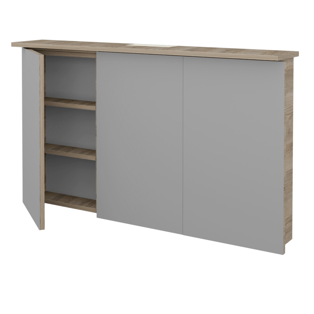Galérka SANI GA3O 120 je konštruovaná v trojdverovom prevedení s tým, že dvierka sa otvárajú cez korpus, čím sa zvýši šírka produktu. Svetlo zaisťuje LED osvetlenie (17,1 W) usadené v hornej časti galérky, na predstupujúcej rampe. Vďaka tomu bez problémov osvetlí aj vnútornú časť.
