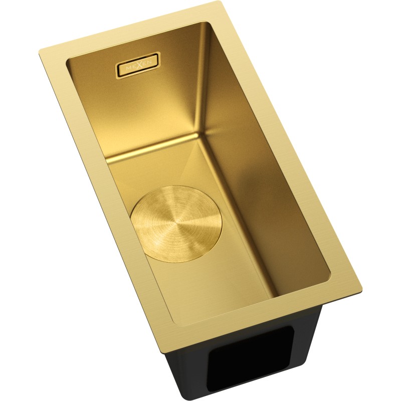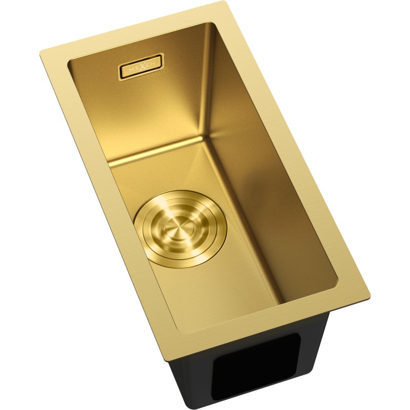 Špecifikácia produktu: Rozmer: 230x440x200 mm Hĺbka drezu: 200 mm Rozmery drezu: 390x180 mm Hrúbka oceľového hrán drezu: 3 mm Hrúbka oceľového hrán drezu: 1 mm Polomer zaoblenia rohov drezu: Typ-2: Priemer-2 Pod dosku Materiál: Nerezová oceľ AISI 304 Farba: Zlatá Povrch: Hladký Povrchová úprava sifónu: Zlatá Otvor pre prepad: Áno Otvor pre batériu: Nie Ručný sifón s odpadkovým košom a zátkou Prídavný kryt odtoku Skrytý otvor pre prepad Zvukovo izolačná rohož farby Odolnosť voči vysokým teplotám a tepelným šokom Povrch pre ľahké čistenie