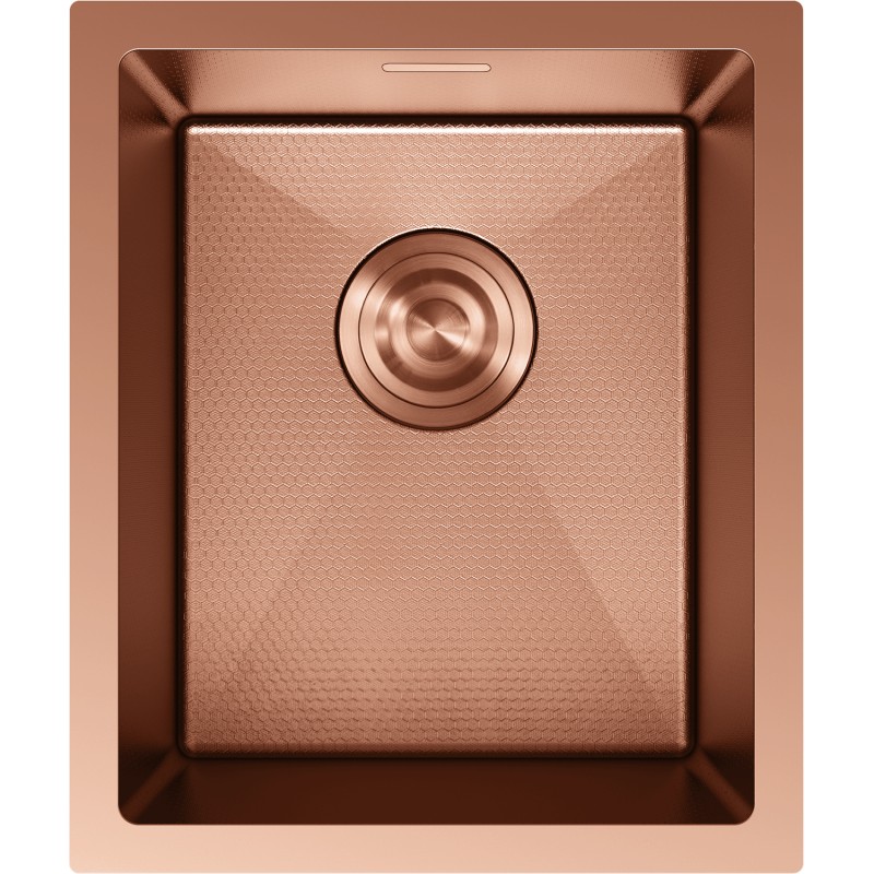 Špecifikácia produktu: Rozmer: 370x440x200 mm Hĺbka drezu: 200 mm Rozmery drezu: 390x320 mm Hrúbka oceľového hrán drezu: 3 mm Hrúbka oceľového hrán drezu: 1 mm Polomer zaoblenia rohov drezu: Typ-2: Priemer-2 Pod dosku Materiál: Nerezová oceľ AISI 304 Farba: Meď Povrch: Voština Povrchová úprava sifónu: Meď Otvor pre prepad: Áno Otvor pre batériu: Nie Ručný sifón s odpadkovým košom a zátkou Prídavný kryt odtoku Skrytý otvor pre prepad Zvukovo izolačná rohož k d Odolnosť voči vysokým teplotám a tepelným šokom Ľahko čistiteľný povrch