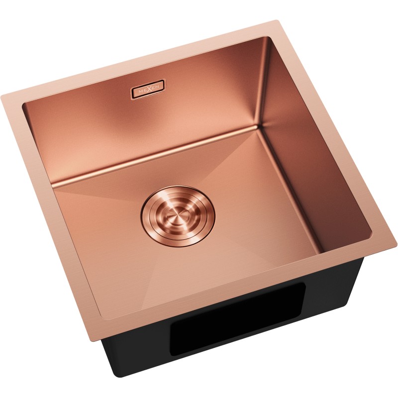 Špecifikácia produktu: Rozmer: 440x440x200 mm Hĺbka drezu: 200 mm Rozmery drezu: 390x390 mm Hrúbka oceľového hrán drezu: 3 mm Hrúbka oceľového hrán drezu: 1 mm Polomer zaoblenia rohov drezu: R10 Priemer odtoku Pod dosku Materiál: Nerezová oceľ AISI 304 Farba: Meď Povrch: Hladký Povrchová úprava sifónu: Meď Otvor na prepad: Áno Otvor na batériu: Nie Ručný sifón s odpadkovým košom a zátkou Prídavný kryt odtoku Skrytý otvor na prepad Zvukovo izolačná rohož farby Odolnosť voči vysokým teplotám a tepelným šokom Povrch pre ľahké čistenie