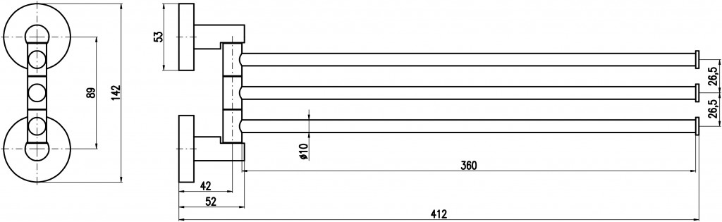 Chrómový trojitý držiak uterákov doladia vzhľad každej kúpeľne. Tým, že je otočný, nie je len pekný na pohľad, ale je aj veľmi praktický.