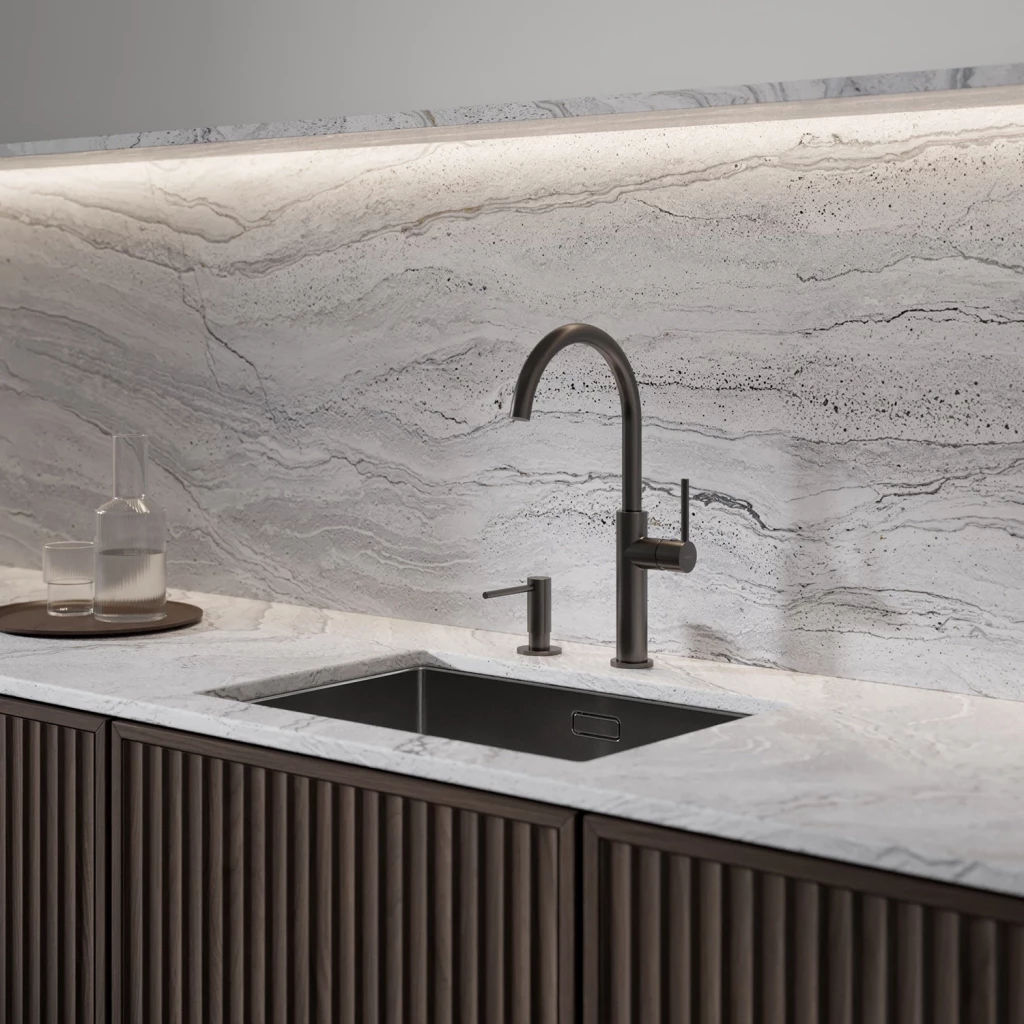 Grafit je zaujímavá povrchová úprava v odtieni metalickej šedej so saténovým kartáčovaným povrchom.