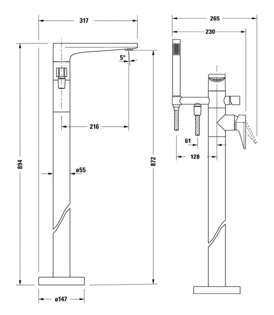 - s držiakom sprchy, sprchovou hadicou a tyčovou ručnou sprchou