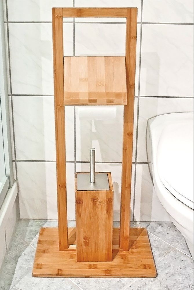 Bambusový stojan na toaletný papier so štetkou si zamilujete. Toaletnú štetku aj papier budete mať hneď po ruke, a navyše nemusíte nič vŕtať. Stačí len postaviť a môžete smelo používať. Vďaka tomu, že je zo 100% prírodného bambusu, dodáte svojej kúpeľni prírodný prvok, ktorý navodzuje príjemnú a relaxačnú atmosféru. Skvele ladí s ďalšími prírodnými dekoráciami, ako sú trávy, drevo či juta.