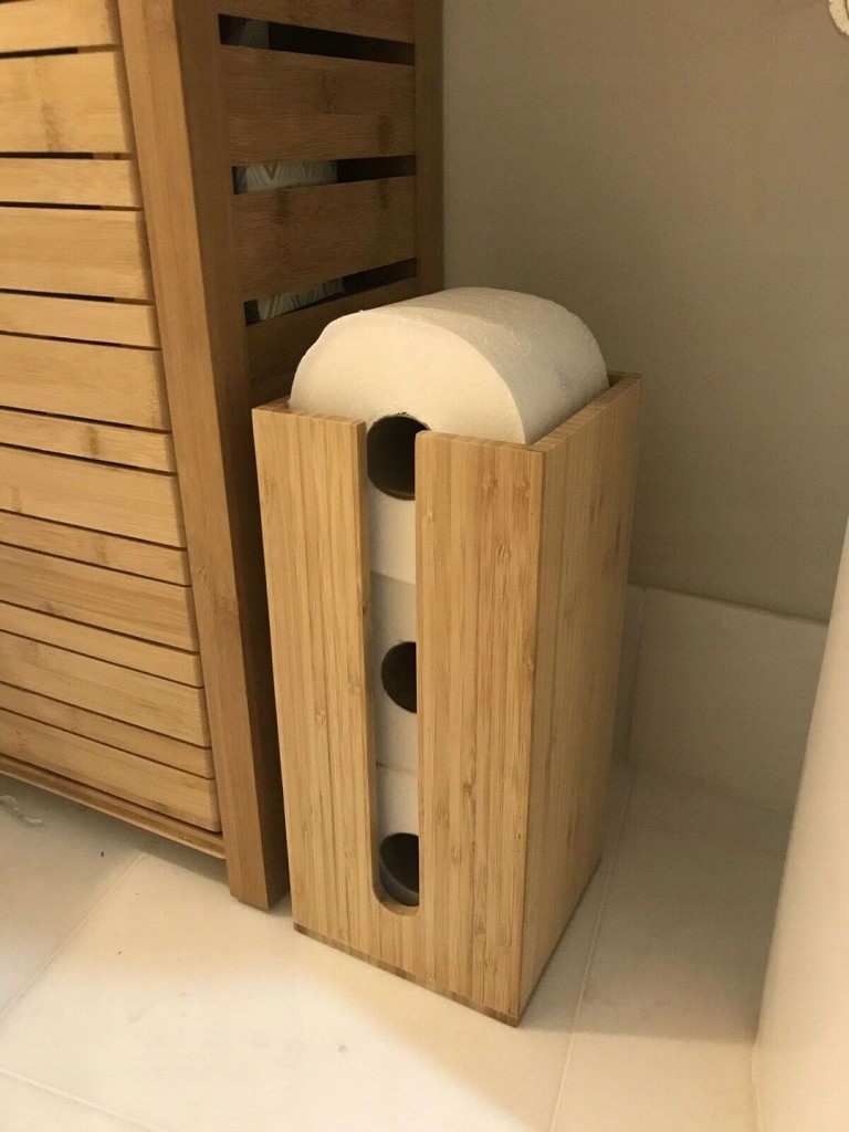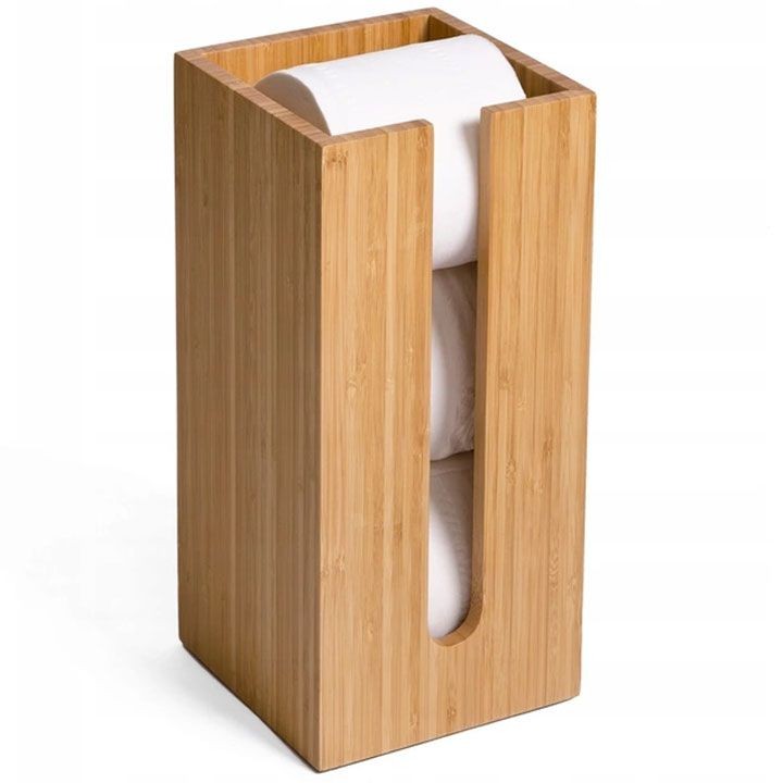 Vytvoriť pekné miesto na zásobu toaletného papiera je ťažké. Väčšinou zostavujeme nevzhľadný, večne padajúci komín, pozeráme sa na krikľavo potlačený obal alebo všetky role upratáme do skrinky, ktorá je v prípade potreby snáď kilometer vzdialená. Bambusový držiak toaletného papiera Tutumi je skvelý na navodenie príjemnej atmosféry, doplnenie ostatných drevených prvkov a pojme dostačujúcu zásobu papiera.