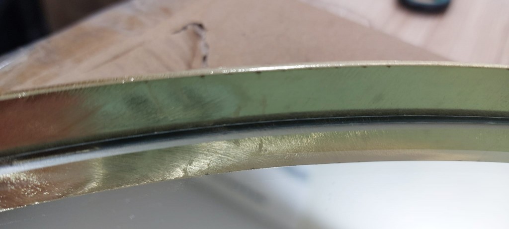 mierne poškriabaný a prehnutý zlatý rám. Viac informácií vady nájdete na fotografiách v galérii.